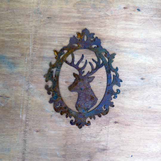 Edelrost Hirsch im Barockrahmen zum Hängen