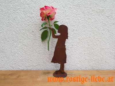 Edelrost Blumenkind Mädchen mit Reagenzglas