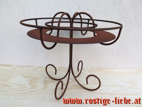 Wir haben die Metallartikel für das Stoppen des Rostvorganges, bzw. die dauerhafte Erhaltung der Edelrost-Oberfläche mit einem Rostbinder behandelt. Die Oberfläche färbt beim Berühren nicht mehr ab. Für den Einsatz auf empfindlichen Untergrund bzw. im Innenbereich bitte auf geeignete Unterlage achten, bzw. Möbelgleiter aus Filz verwenden.