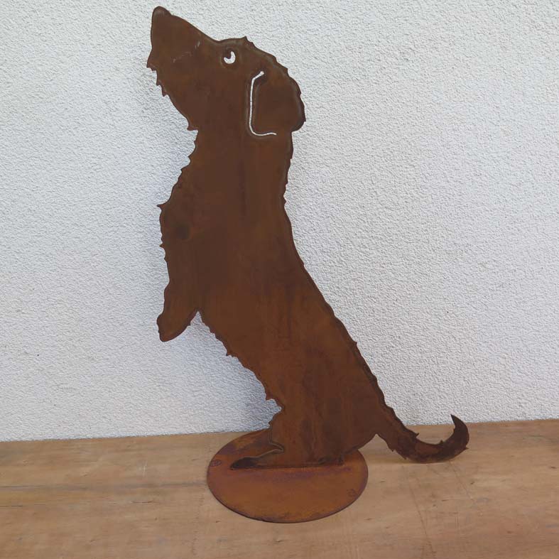 Rauhaardackel auf einer Platte für gute Standfestigkeit